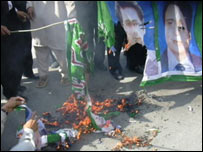 کراچی بار ایسو سی ایشن کی جانب سے احاطے کے اندر احتجاجی مظاہرہ کیا گیا جس میں صدر پرویز مشرف کے خلاف سخت نعرے بازی کی گئی۔ دوسری جانب سندھ ہائی کورٹ کی طرف آنے والی سڑکوں پر بڑی تعداد میں پولیس اہلکار تعینات ہیں اور سڑکوں پر ناکے لگائے گئے ہیں۔ لاڑکانہ اور حیدرآباد ڈویژن کے اکثر شہروں میں اے پی ڈی ایم کی جانب سے دی گئی ہڑتال کی کال پر ملا جلا ردِ عمل دیکھنے میں آیا ہے جبکہ ان شہروں میں وکلا نے بائیکاٹ بھی کیا ہے۔ سندھی زبان بولنے والے علاقے قاسم آباد میں مکمل جبکہ بدین میں جزوی ہڑتال ہے جہاں پر وکلاء نے مختلف جگہوں سے چھوٹی ریلیاں بھی نکالی ہیں۔ سرحد سرحد اسمبلی میں پولنگ کے دوران وکلاء نے اسمبلی کے باہر پولیس کی ایک بکتر بند گاڑی کو آگ لگا دی۔ وکلاء نے صدارتی انتخاب کے موقع پر سرحد اسمبلی کے گھیراؤ کی دھمکی دے رکھی تھی۔ وکلاء ہائی کورٹ سے ایک جلوس کی شکل میں سرحد اسمبلی کی طرف آئے اور انہوں نے اسمبلی کی عمارت پر پتھراؤ شروع کر دیا۔ اس سے اسمبلی کی عمارت کے چند شیشے ٹوٹ گئے۔ اس موقع پر پولیس نے وکلاء کو منتشر کرنے کے لیے ان پر آنسو گیس کے شیل پھینکے۔ اسلام آباد | اسی بارے میں صدارتی الیکشن، احتجاج کا اعلان06 October, 2007 | پاکستان غیر سرکاری نتائج، مشرف کامیاب06 October, 2007 | پاکستان صدارتی الیکشن پولنگ، فیصلہ بعد میں06 October, 2007 | پاکستان انتخاب وقت پر، نتائج بعد میں05 October, 2007 | پاکستان سولہ کروڑ عوام ہمارے ساتھ:وجیہہ 05 October, 2007 | پاکستان | ||||||||||||||||||||||||||||||||||||||||