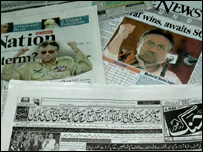 پاکستان کے تمام قومی اخبارات نے صدارتی انتخابات اور ان کے غیر سرکاری نتائج کو اپنے اپنے انداز میں شہ سرخیوں کا موضوع بنایا ہے جبکہ مخالف صدارتی امیدوار وجیہہ الدین کے ردِعمل کو بھی نمایاں طور پر شائع کیا ہے۔ اخبارات نے صدر جنرل پرویز مشرف کی وردی میں ملبوس تصاویر شائع کیں ہیں ۔صدر مشرف مشرف کی کامیابی پر ان حامیوں کی طرف سے جشن منانے کی خبروں اور تصاویر کو بھی نمایاں انداز میں شائع کیا گیا ہے۔ ’روزنامہ جنگ‘ کی سرخی ہے: ’صدارتی انتخاب : جنرل پرویز بھاری اکثریت سے جیت گئے،غیر سرکاری نتائج ‘۔اخبار نے صدر مشرف کے بیان کو سرخی کی کیچ لائن میں شامل کیا ہے: ’سول حکمرانی کی طرف سفر کا آغاز ہوگیا، سپریم کورٹ کا فیصلہ میرے خلاف آیا تو دیکھیں گے کیا کرنا ہے، صدر پرویز‘۔ صدر مشرف کی کامیابی پر جشن کو ’جنگ‘ نے سُپر لیڈ بنایا ہے: ’صدر مشرف کی کامیابی پر اسلام آباد اور لاہور سمیت مختلف شہروں میں مسلم لیگ اور اتحادی جماعتوں کی ریلیاں، پاکستان صدر پرویز کی قیادت میں آگے بڑھے گا، شوکت عزیز ‘۔ ’نوائے وقت‘ کے الفاظ ہیں: ’مشرف صدارتی الیکشن جیت گئے،غیر سرکاری نتائج کا اعلان ،دو سو ایک ارکان پہلے ہی مستعفیْ ہوچکے ہیں، پیپلز پارٹی کا بائیکاٹ‘۔