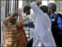 واضح رہے کہ سپریم کورٹ کی طرف سے اس واقعہ کے نوٹس کے بعد حکومت نے اسلام آباد پولیس کے آئی جی مروت علی شاہ، ایس ایس پی ڈاکٹر محمد نعیم اور ڈپٹی کمشنر چوہد ری محمد علی کو معطل کردیا تھا۔ چیف جسٹس کے استفسار پر معطل ایس ایس پی ڈاکٹر نعیم نے بتایا کہ وقوعہ کے روز سات سو کے قریب سادہ کپڑوں میں پولیس اہلکار موجود تھے اور یہ تمام کانسٹیبل ہیں۔ عدالت نے حکم دیا کہ ان زیر تربیت پولیس کانسٹیبلان کا سروس ریکارڈ عدالت میں پیش کیا جائے۔ سماعت کے دوران عدالت نے اسلام آباد کے چیف کمشنر اور پولی کلینک اور پمز ہسپتال کے میڈیکل سپرٹنڈنٹ کی عدم موجودگی کا سخت نوٹس لیتے ہوئے کہا کہ ایسا معلوم ہوتا ہے کہ وہ اس مقدمے میں سنجیدہ نہیں ہیں۔ عدالت نے حکم دیا کہ مذکورہ افراد ائندہ سماعت پر عدالت میں اپنی حاضری کو یقینی بنائیں ورنہ اُن کے خلاف کارروائی ہوگی۔ عدالت نے پولی کلینک اور پمز ہسپتال کی انتظامیہ کو حکم دیا کہ وہ آئندہ سماعت سے قبل وقوعہ کے روز زخمی ہونے والے وکلاء، صحافیوں ، سول سوسائٹی اور پولیس اہلکاروں کے میڈیکل سرٹیفکیٹ عدالت میں پیش کریں۔ عدالت نے اس مقدمے کی سماعت اکتیس اکتوبر تک ملتوی کر دی ہے۔ | اسی بارے میں صحافیوں کا ملک گیر احتجاج30 September, 2007 | پاکستان چھ وکلاء پر دہشت گردی کا مقدمہ30 September, 2007 | پاکستان تشدد: صحافیوں کا ملک گیر احتجاج30 September, 2007 | پاکستان انتخابی عمل کا پرتشدد آغاز29 September, 2007 | پاکستان چھ امیدواروں کے کاغذات منظور29 September, 2007 | پاکستان وکلاء کا ملک گیر یوم سیاہ29 September, 2007 | پاکستان | ||||||||||||||||||||||||||||||||||||||||
