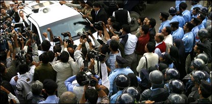 ادھر پیپلز پارٹی کے رہنما شاہ محمود قریشی کا کہنا ہے کہ پنجاب بھر سے پیپلز پارٹی کے پانچ ہزار کارکن گرفتار کیےگئے ہیں۔ شاہ محمود قریشی نے بی بی سی اردو سے بات کرتے ہوئے دعوٰی کیا ہے کہ صوبہ پنجاب کے متعدد شہروں سے پیپلز پارٹی کے کارکنوں اور عہدیداروں کو حراست میں لے کے تھانوں اور حوالات میں بند کر دیا گیا۔ ادھر کراچی میں وکلاء برادری نے ملک کے دیگر حصوں کی طرح عدالتی کارروائی کا بائیکاٹ ہفتہ کو بھی جاری رکھا۔ وکلاء کی قیادت جو اب تک گرفتار نہیں ہوئی اتوار کو اپنے اجلاس کے بعد مستقبل کے لائحہ عمل کے بارے میں اعلان کرے گی۔ انہوں نے کہ حالات کو دیکھتے ہوئے یہ اجلاس اتوار سے پہلے بھی ہو سکتا ہے۔ سندھ ہائی کورٹ میں سنیچر کو پولیس اور رینجر کی بھاری نفری عدالتِ عالیہ کے دونوں داخلی دروازوں پر تعینات تھی تاکہ وکلاء کی جانب سے کسی بھی ممکنہ احتجاج کو ناکام بنایا جا سکے۔ ہائی کورٹ بار ایسوسی ایشن کے سابق صدر اختر حسین نے بی بی سی سے باتیں کرتے ہوئے بتایا کہ جو وکلاء اب تک گرفتار نہیں ہوئے ہیں وہ ایک دوسرے سے رابطے میں ہیں اور مستقبل کے لائحہ عمل کے لئے فیصلے کریں گے جس کا اعلان اتوار تک کردیا جائے گا۔ |