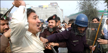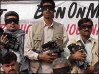 وکلاء کی رہنماء مسرت ہلالی نے بی بی سی کو بتایا کہ پاکستان بار کونسل کے فیصلے کے مطابق بدھ کو وکلاء نے ماتحت عدالتوں کا بائیکاٹ اس لیےختم کردیا تھا تاکہ جیلوں میں موجود وکلاء اگر چاہیں تو رہائی کے لیے ضمانت کی درخواست جمع کرا سکیں تاہم ان کے بقول کسی بھی وکیل نے ضمانت کے لیے درخواست نہیں دی۔ وکلاء کا کہنا ہے کہ ایمرجسنی کے نفاذ کے بعد ان کے ساتھیوں کی گرفتاری کا جو سلسلہ شروع کیا گیاتھا وہ گزشتہ کئی دنوں سے بظاہر رک گیا ہے تاہم اب بھی ان کے دو سو سے زائد ساتھی صوبہ سرحد کے مختلف جیلوں میں بند ہیں۔حکام کا کہنا ہے کہ اب تک ایک ستائیس کے قریب وکلاء اور سیاسی کارکنوں کو گرفتار کیا جا چکا ہے جن میں سےایک سو نو ہری پور، دس ڈیرہ اسماعیل خان اور آٹھ کو پشاور جیل میں رکھا گیا ہے۔ صوبہ سرحد کے صحافیوں نے جمعرات کو دوسرے روز بھی نجی ٹیلی ویژن چینلز کی بندش کیخلاف پریس کلبوں کے باہر احتججی کیمپ لگائے اور اس موقع پر انہوں نے بازؤوں اور منہ پر سیاہ پٹیاں باندھیں۔ادھر جماعت اسلامی اور پیپلز پارٹی نے بھی جمعرات کو احتجاجی مظاہرے کا اعلان کر رکھا ہے۔ |
