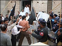 انہوں نے کہا کہ دنیاکے کسی مہذب ملک میں صحافیوں کے ساتھ ایسا سلوک روا نہیں رکھا جاتا جیسا کہ پاکستان میں حکومت نے رکھا ہوا ہے۔ صحافیوں کی بین الاقوامی تنظیم کے عہدیدار نےپی سی او کو مسترد کیا اور کراچی،اسلام آباد اور دیگر مقامات پر صحافیوں پر تشدد اور پیمرا قوانین کی مذمت کی۔ انہوں نے کہا کہ وہ حکومت سے مطالبہ کرتے ہیں کہ ٹی وی چینلوں اورایف ایم ریڈیو کی نشریات بحال کی جائیں اور پاکستان میں انیس سو تہتر کے آئین کے ساتھ عدلیہ کو بحال کیا جائے۔ ملتان اور بہاولپور سمیت پنجاب کے دیگر شہروں سے بھی احتجاجی مظاہرے ہوئے ہیں۔ میڈیا پر پابندی کے خلاف صحافیوں کا احتجاج تیسرے ہفتے میں داخل ہوگیا ہے۔ تین نومبر کے بعد سے پنجاب کے صحافی احتجاجاً بازوں پر کالی پٹیاں باندھ کر کام کررہے ہیں اور پریس کلبوں پر سیاہ پرچم لہرائے جارہے ہیں۔ |