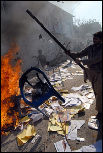 نگران وزیر اعظم محمد میاں سومرو کے آبائی شہر جیکب آباد میں دو ہزار شہریوں کے خلاف تین بینکوں کو نقصان پہنچانے، ضلع کونسل اور دیگر سرکاری دفاتر کو جلانے کے چودہ مقدمات دائر کیے گئے ہیں۔ ٹنڈوجام میں پیپلز پارٹی کے کارکنوں سمیت دو سو افراد کے خلاف نو مقدمات درج کیے گئے ہیں۔ نوشہرو فیروز ضلع کی مورو پولیس نے پانچ مقدمات درج کیے گئے ہیں۔ سول جج کی فریاد پر سول کورٹ کی عمارت کو نذر آتش کرنے کا مقدمہ درج کیا گیا ہے۔ بدین میں ایک درجن سے زائد افراد کے خلاف توڑ پھوڑ کرنے کے الزام میں کیس داخل کیے گئے۔ خیرپور کے علاقے ٹھری میرواہ میں سرکاری املاک کو نقصان پہنچانے کے الزام میں ساڑھے تین ہزار افراد کے خلاف مقدمات درج کیے گئےہیں، سینئر سول جج نے عدالت کی عمارت اور رکارڈ کو نذر آتش کرنے کا مقدمہ درج کیا گیا ہے۔ جبکہ خیرپور شہر کے تھانوں میں بھی سرکاری املاک کو نقصان پہنچانے کے مقدمات درج کیے گئے ہیں۔ سندھ بھر میں بینظیر بھٹو کے سوئم کے روز یہ مقدمات دائر کیے گئے ہیں۔ دوسری جانب پاکستان پیپلز پارٹی کے شریک چیئرمین آصف علی زرداری نے ملک بھر سے پاکستان پیپلز پارٹی کے کارکنوں کی گرفتاری اور ان پر مقدمات دائر کرنے کی مذمت کرتے ہوئے ان کی رہائی کا مطالبہ کیا ہے۔ زرداری نے پریس کو ایک بیان جاری کیا ہے جس میں انہوں نے کہا ہے کہ صدمے میں مبتلا ہونے کے باوجود وفاق کو بچانے کے لیے پاکستان پیپلز پارٹی نے انتخابات میں حصہ لینے کا فیصلہ کیا۔ انہوں نے کہا کہ اس قسم کی گرفتاریوں سے غیرجمہوری قوتیں پیپلز پارٹی کو انتخابات سے دور رکھنا چاہتی ہے۔ آصف علی زرداری کا کہنا تھا: ’پی پی کارکن بینظیر بھٹو کا سوگ منا رہے ہیں، وہ لوٹ مار میں ہرگز ملوث نہیں ہیں، حکومت حقیقی مجروں کو تلاش کرے۔‘ |