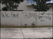 طالبان کی پاکستان کے دارالحکومت میں آمد کے آثار اسلام آباد کے چند سیکٹرز میں نمایاں ہوتے جا رہے ہیں۔ ان سیکٹرز میں مارکیٹوں، کالجز، سکولوں اور گھروں کی دیواروں پر طالبان کے حق میں وال چاکنگ نظر آنے لگی ہے۔ یہ وال چاکنگ تقریباً ڈیڑھ ماہ قبل کی گئی ہے جس میں ’طالبان یوتھ فورس‘ اور القاعدہ سے تعلق کا اعلان کیا گیا ہے۔ زیادہ تر وال چاکنگ میں ’طالبان یوتھ فورس لحن القائدہ‘ لکھا گیا ہے۔ ایک وال چاکنگ میں طالبان کی آمد کا اعلان انگریزی میں کرتے ہوئے لکھا گیا ہے ’طالبان یہاں موجود ہیں۔ جینا ہمیں سکھا دیا غازی شہید نے‘۔ چونکہ یہ وال چاکنگ یوتھ فورس کے حوالے سے ہے اس لیے یہ زیادہ کالجز اور سکولوں کی دیواروں پر لکھائی نظر آتی ہے۔ اس امر کا اعتراف وزارت داخلہ کے ترجمان بریگیڈیر ریٹائرڈ جاوید اقبال چیمہ نے بھی کیا ہے اور کہا ہے کہ وہ ان وال چاکنگز سے باخبر ہیں اور اس سلسلے میں چند افراد کو حراست میں بھی لیا گیا ہے۔ ’ہم فوری طور پر چیف کمشنر اور انسپکٹر جنرل پولیس کو ہدایات دی دیتے ہیں اور اس پر عمل ہوتا ہے۔ اور مجھے امید ہے کہ کسی قسم کی وال چاکنگ اسلام آباد میں نہیں ہو گی‘۔ یہ وال چاکنگ اسلام آباد کے جی ٹین سیکٹر میں زیادہ کی گئی ہے جیسے کہ وہاں کے لڑکیوں کے کالج کی دیوار اور اس سے کچھ فاصلے پر ایک بچوں کا پرائیوٹ سکول اور اس کے بالکل سامنے ایک اور کالج کی دیواروں پر چاکنگ موجود ہے۔ ایڈووکیٹ صلاح الدین نے جو کہ مذہبی انتہا پسندی پر گہری نظر رکھتے ہیں، بی بی سی سے بات کرتے ہوئے کہا کہ وال چاکنگ کو نظر انداز نہیں کرنا چاہیے کیونکہ یہ عسکریت پسندوں کے ابتدائی حربوں میں سے ایک ہے۔ ’وال چاکنگ سے یہ انتہا پسند حکومت، قانون نافذ کرنے والے اداروں اور عوام کا ردِ عمل دیکھتے ہیں۔ اور اگر ردِ عمل کمزور ہو تو وہ اس علاقے کو اپنی کاروائیوں کے لیے زرخیز سمجھتے ہیں‘۔ انہوں نے مزید کہا کہ وزیرستان اور پشاور میں بھی یہی ابتدائی حربے استعمال کیے گئے تھے اور ردِ عمل کمزور پا کر ہلکی پھلکی کاروائیاں شروع کر دیں گئیں۔ ان کا کہنا تھا کہ ہلکی پھلکی کاروائیوں میں سی ڈی کی دکان پر حملے وغیرہ شامل ہیں۔