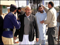 نواز شریف کی پشاور آمد کے موقع پر شہر میں سکیورٹی کے سخت انتظامات کیے گئے تھے۔ہائی کورٹ کی طرف جانے والی شاہراہ کو ہر قسم کی ٹریفک کے لیے بند کردیا گیا تھا جبکہ عمارت میں داخل ہونے والے دو مقامات پر جامہ تلاشی لی جارہی تھی۔ہائی کورٹ کی عمارت کی چھت پر بھی پولیس کے اہلکار چوکس کھڑے تھے۔ سکیورٹی کے لحاظ سے نواز شریف کو سابق وزیراعظم کا پروٹوکول دیا گیا تھا۔ہائی کورٹ آمد کے موقع پر ان کے قافلے کو یہ کہہ کر آدھ گھنٹے تک روک دیا گیا کہ پولیس نے دعوی کیا کہ انہوں نے سوری پل پر ایک ٹائم بم برآمد کیا ہے لہذا راستے کو کلیئر کیا جا رہا ہے۔اس پل سے کچھ ہی دیر بعد نواز شریف کے قافلے کو گزرنا تھا۔ وکلاء سے خطاب کے بعد وہ پشاور ہائی کورٹ کے برطرف چیف جسٹس طارق پرویز اور دیگر جج صاحبان سے ملنے ان کی رہائش گئے جہاں پر انہوں نے پی سی او کے تحت حلف نہ لینے پر انہیں خراج تحسین پیش کیا۔ واضح رہے کہ نواز شریف نے آٹھ سال کے بعد پشاور کا دورہ کیا ہے۔ | اسی بارے میں الیکشن کمشنر بھگوان داس: نواز16 January, 2008 | پاکستان مشرف تمام مسائل کی جڑ ہیں: نواز07 January, 2008 | پاکستان انتخابات کا بائیکاٹ: نواز شریف27 December, 2007 | پاکستان ججوں کی بحالی ضروری: نواز23 December, 2007 | پاکستان آٹھ جنوری ریفرنڈم کا دن: نواز شریف10 December, 2007 | پاکستان نواز: ججوں کی بحالی اشد ضروری23 December, 2007 | پاکستان نواز حلف نہ لینے والے ججوں کے گھر27 November, 2007 | پاکستان | ||||||||||||||||||||||||||||||||||||||||