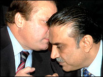 صوبوں کی خود مختاری کے مطالبات اور ان کے درمیان وسائل کی تقسیم، علیحدگی پسندی کی شورشوں ،شدت پسندی بدامنی سے نمٹنا اور پانی بجلی اور گیس کی قلت ایسے مسائل ہیں جن پر یقینی طور پر غیر مقبول فیصلے کرنے پڑیں گے۔ پیپلز پارٹی کے ایک رہنماکے بقول اگر مسلم لیگ نون کو مرکزی کابینہ میں شامل نہ کیا گیا تویہ ساری غیر مقبولیت کی پیپلز پارٹی بلاشرکت غیرے کے حصے میں آئے گی۔ سیاسی تجزیہ کاروں کا کہنا ہے کہ یہی وہ اہم معاملات ہیں جو دونوں پارٹیوں کو الجھائے ہوئے ہیں۔ پیپلز پارٹی کا ایک بڑے حلقے کا موقف ہے کہ ساجھے داری وہ جس میں نفع نقصان برابر کا ہو لیکن ان کے بقول مسلم لیگ نون ذمہ داریوں سے بچنا چاہتی ہے۔ عام خیال یہی ہے کہ یہ بات دونوں پارٹیوں کی لیڈر شپ بھی بھانپ گئی ہے کہ یہ کاٹھ کی ہنڈیا ہے جو زیادہ دیر چڑھے نہیں رہ سکتی۔ شائد اسی لیے حل یہ نکالا گیا ہے کہ تمام اہم فیصلے دونوں پارٹیوں کے ہنی مون پیرئڈ یعنی محبت کے ابتدائی ایام میں انجام دے دئیے جائیں۔ | اسی بارے میں سندھ کے چیلنج اور حکومت سازی24 February, 2008 | الیکشن 2008 پی پی:مزید حمایت حاصل کرنےکادعوٰی22 February, 2008 | الیکشن 2008 زرداری،ولی مخلوط حکومت پرمتفق21 February, 2008 | الیکشن 2008 ’مستعفی ہونے کا ارادہ نہیں‘ مشرف20 February, 2008 | الیکشن 2008 حکومت سازی کی کوششوں کا آغاز20 February, 2008 | الیکشن 2008 زرداری کے خلاف تفتیش پر زور20 February, 2008 | الیکشن 2008 پاکستان کا سیاسی منظر تبدیل، مشرف حامیوں کی ہار19 February, 2008 | الیکشن 2008 مشرف مستعفی ہو جائیں: زرداری19 February, 2008 | الیکشن 2008 | ||||||||||||||||||||||||||||||||||||||||