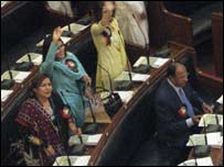 ایک دوسری متفقہ قرار داد میں وفاقی حکومت سے مطالبہ کیا گیا کہ بینظیر بھٹو کی ہلاکت کی اقوام متحدہ سے تحقیقات کرائی جائیں اور سندھ کے ضلع نوابشاہ کا نام بینظیر بھٹو سے منسوب کیا جائے۔ اجلاس کے اختتام سے قبل سپیکر سید مظفر حسین شاھ نے سپیکر اور ڈپٹی اسپیکر نے انتخاب کا اعلان کیا جس کے لیے سنیچر کی شام تک نامزدگی فارم جاری کیے جائیں گے جو اتوار کی دوپہر بارہ بجے تک وصول ہوں گے جبکہ پیر کو سپیکر اور ڈپٹی سپیکر کا انتخاب کیا جائےگا۔ اجلاس کے آغاز سے قبل ہی پاکستان پیپلز پارٹی کے کارکنوں کی ایک بہت بڑی تعداد اسمبلی کے اندر داخل ہوگئی جس وجہ سے مہمانوں کی گیلریوں سمیت تمام جگہوں پر رش ہوگیا۔ کارکن خصوصی مہمانوں اور حکام کے لیے سپیکر کے دائیں اور بائیں طرف بنائی گئی گیلریوں میں بھی داخل ہوگئے۔ اجلاس کے دوران سابقہ حکمران جماعت کے خلاف سخت مزاحمت دیکھی گئی، مسلم لیگ (ق) کے رکن قومی اسمبلی اور سابق وفاقی وزیر غوث بخش مہر جب مہمانوں کی گیلری میں پہنچے تو پیپلز پارٹی کے کارکنوں نے ان کے خلاف شدید نعرے بازی کی۔ غوث بخش مہر کے بیٹے کیپٹن شہریار پہلی مرتبہ رکن صوبائی اسمبلی منتخب ہوئے ہیں۔ پیپلز پارٹی کی منحرف سابق رکن اور مسلم لیگ ق کی رکن اسمبلی نزہت پٹھان بھی جیسے ہی ایوان میں داخل ہوئیں تو ایوان گیلریوں سے نعروں سے گونج اٹھا۔ اجلاس کے دوران مسلم لیگ ق کے صوبائی صدر اور سابق وزیراعلیٰ ارباب غلام رحیم کو سخت مزاحمت کا سامنا کرنا پڑا اور وہ بغیر حلف اٹھائے واپس چلے گئے۔ ارباب غلام رحیم جب اسمبلی کی عمارت میں داخل ہوئے تو پیپلز پارٹی کے کارکنوں نے انہیں گھیر لیا اور اس دوران کھینچا تانی میں ان کی قمیض بھی پھٹ گئی۔ ارباب غلام رحیم نے سپیکر کے چیمبر میں جانے کی کوشش کی مگر پیپلز پارٹی کے کارکن ان کے سامنے آگئے جس کے بعد وہ حلف لیے بغیر واپس چلے گئے۔کارکنوں نے سندھ اسمبلی کی لابی میں لگی ہوئی سابق وزرائےاعلٰی کی تصاویر میں سے لیاقت جتوئی اور ارباب غلام رحیم کی تصاویر اکھاڑ کر توڑ دیں۔ ارباب غلام رحیم نے الزام عائد کیا ہے کہ ان پر حملے کی منصوبہ بندی پیپلز پارٹی کے پارلیمانی پارٹی کے اجلاس میں کی گئی تھی۔ کراچی میں پریس کانفرنس سے خطاب کرتے ہوئے انہوں نے کہا کہ ملک میں مفاہمت کا عمل جاری ہے اور وہ بھی افہام و تفہیم چاہتے ہیں مگر اسمبلی میں ان کے ساتھ ہتک آمیز سلوک کیا گیا اور گالیاں دی گئیں۔ | اسی بارے میں ’نصف ارکان کی پہلی اسمبلی‘28 March, 2008 | پاکستان سندھ:اتحاد سے قبل اعتراضات31 March, 2008 | پاکستان سندھ:’پیپلز پارٹی مفاہمت کی خواہاں‘01 April, 2008 | پاکستان سندھ: سپیکر کا انتخاب 7 اپریل کو01 April, 2008 | پاکستان ’معاف بھی کیا اور معافی بھی مانگی‘03 April, 2008 | پاکستان پی پی، ایم کیوایم مفاہمت کمیٹی03 April, 2008 | پاکستان بھٹو کی برسی اور بدلتے سیاسی رنگ04 April, 2008 | پاکستان | ||||||||||||||||||||||||||||||||||||||||