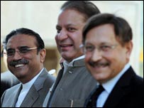 وفاقی وزیر سے جو خود بھی پیشے کے اعتبار سے وکیل ہیں پوچھا گیا کہ اس پیکج میں صدر کے اسمبلیاں تحلیل کرنے جیسے اختیارات واپس لینے کی تجویز پیش کی گئی ہے تو کیا انہیں ایوان صدر کی جانب سے مزاحمت کا خدشہ نہیں ہے۔ جواب میں فاروق نائیک کا کہنا تھا کہ وہ اختیارات کا توازن چاہتے ہیں جو پارلیمانی نظام اور جمہوریت میں ہوتا ہے۔ ’کوئی بھی شق جو پارلیمان کے سر پر تلوار ہو ہر حکومت چاہتی ہے کہ اس کو ختم کیا جائے۔ تاہم اس کے بارے میں حتمی فیصلہ کابینہ اور پھر پارلیمان کرے گی‘۔ انہوں نے اس پیکج کی بابت صدر سے اب تک کسی مشاورت سے انکار کیا۔ ان کا کہنا تھا کہ آصف علی زرداری کے حکم پر معزول ججوں کی پانچ ماہ کی تنخواہیں ادا کرنے کے فیصلے پر ابھی تک کچھ طے نہیں ہوا ہے اور توقع ہے کہ وزیراعظم کی ملک واپسی پر اس میں کوئی پیش رفت ہو گی۔ حکومت کو وکلاء برادری کی جانب سے دس جون سے لانگ مارچ کی دھمکی کا سامنا ہے جس سے بچنے کی خاطر وہ ترمیمی بل جلد از جلد ایوان میں پیش کرنے کی خواہش مند نظر آتی ہے۔ لیکن ابھی اس پیکج کو پیپلز پارٹی کی حد تک بھی حتمی شکل نہیں دی جاسکی ہے۔ یہ اتحادی کی مشاورت سے پارلیمان کب پہنچے گی کچھ کہنا کافی مشکل دکھائی دیتا ہے۔ |