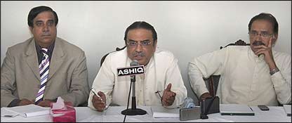 پاکستان پیپلز پارٹی کے شریک چئرمین آصف علی زرداری نے کہا ہے کہ انہوں نے صدر پرویز مشرف کو کبھی آئینی صدر تسلیم نہیں کیا اور وہ چاہتے ہیں کہ صدر خود چلے جائیں بجائے اس کے کہ ان کا احتساب ہو۔ یہ بات انہوں نے سنیچر کو پیپلز پارٹی کی مرکزی مجلس عاملہ اور وزراء کے اجلاس کے بعد نیوز بریفنگ میں کہی۔ انہوں نے کہا کہ آئینی پیکیج پر تمام سیاسی جماعتوں سمیت ایوان صدر سے بھی بات چیت کریں گے کیونکہ ان کے بقول ڈائیلاگ ہی سیاستدان کا سب سے بڑا ہتھیار ہوتا ہے۔ ’شہید ذوالفقار علی بھٹو نے بھارت سے نوے ہزار پاکستانی فوجی چھڑوائے اور ہزاروں مربع میل زمین واپس لی۔ بینظیر بھٹو شہید نے صدر پرویز مشرف سے فوجی وردی اتروائی۔ یہ سب ڈائیلاگ سے ہوا۔‘ ان سے جب پوچھا گیا کہ بینظیر بھٹو کے قتل کی جانچ اقوام متحدہ سے کروانے پر انٹیلی جنس ادارے آئی ایس آئی کو اعتراضات ہیں تو انہوں نے ایک پوسٹر دکھایا جس پر جیل کے دوران ان پر مبینہ تشدد کے نشانات تھے۔