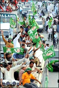 اسلام آباد کے پریڈ گراؤنڈ میں لانگ مارچ کے شرکاء سے خطاب کرتے ہوئے مسلم لیگ نواز کے رہنما نواز شریف نے کہا ہے کہ پھانسیاں اور ملک بدری کیوں صرف سیاستدانوں کا ہی مقدر ہیں۔ دوسری طرف سپریم کورٹ بار کے صدر اعتزاز احسن سے جب لوگوں نے مطالبہ کیا کہ اسلام آباد میں دھرنا دیا جائے تو انہوں نے کہا کہ یہ سب کچھ مشاورت سے ہو گا اور ’ہمارے پاس اتنے وسائل نہیں کہ ہم دھرنا دیں لیکن جو بیٹھنا چاہتا ہے وہ بیٹھ سکتا ہے۔‘ اس سے قبل مسلم لیگ (ن) کے رہنما نواز شریف نے وکلاء سے کہا تھا کہ وہ پارلیمنٹ ہاؤس کے سامنے دھرنا دینے کا فیصلہ مشاورت کے بعد کریں جس کے لیئے وہ بعد میں بھی اسی تعداد میں آئیں گے۔ ’میری گزارش ہے کہ جب وہ (اعتزاز احسن) کہیں گے وہ سب آئیں گے اور مل کر کردار ادا کریں گے۔‘ نواز شریف نے اپنی تقریر میں کہا کہ یہ ہے عوامی طاقت کا مظاہرہ نہ کہ وہ جو صدر مشرف نے پچھلے سال بارہ مئی کے سانحہ کا مذاق اڑاتے ہوئے اپنے ہاتھ لہرا کر کہا تھا کہ یہ ہے عوامی طاقت۔ ’یہ عوام کسی ڈی سی یا ایس پی کے نہیں لائے ہوئے اور نہ ہی کرائے پر لائے ہوئے ہیں۔ یہ وہ لوگ ہیں جو ملک پر من، تن، دھن سب کچھ قربان کرنے کے لیے تیار ہیں۔‘
