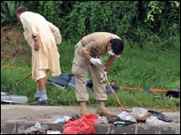 وفاقی دارالحکومت اسلام آباد میں میلوڈی مارکیٹ کے قریب اتوار کو ہونے والے خودکش حملے کی تحقیقات جاری ہیں جبکہ اس دھماکے میں ہلاک ہونے والے پولیس اہلکاروں کو پیر کی صبح سرکاری اعزاز کے ساتھ دفنا دیا گیا ہے۔ ادھر دھماکے کے بعد پمز ہسپتال میں داخل کیے جانے والے زخمیوں میں سے ایک سپیشل برانچ کے اہلکار حسنات کی ہلاکت سے مرنے والوں کی تعداد بیس ہوگئی ہے جبکہ اس خود کش حملے کے نتیجے میں چالیس سے زائد افراد زخمی ہوئے ہیں۔ وزیراعظم کے مشیر داخلہ رحمان ملک کا کہنا ہے کہ انہیں مبینہ خودکش حملہ آور کے جسم کے ٹکڑے ملے ہیں جنہیں بنیاد بنا کر تحقیقات کی جا رہی ہیں۔انہوں نے حملہ آور کی شناخت میں مدد دینے والوں کے لیے پچاس لاکھ روپے انعام کا بھی اعلان کیا ہے۔ مختلف تحقیقاتی اداروں کے درجن بھر اہلکاروں نے پیر کی صبح جائے وقوعہ کا تفصیلی جائزہ لیا اور وہاں سے مزید شواہد اکٹھے کیے۔ دھماکے کے بعد سے یہ علاقہ خاردار تاروں، پیلی ٹیپ اور بیرئیرز سے سیل کیا گیا ہے۔ تاحال کسی فرد یا تنظیم نے ابھی تک اس حملے کی ذمہ داری قبول نہیں کی ہے جو ایک برس میں اب تک کا سب سے زیادہ جان لیوا حملہ قرار دیا جا رہا ہے۔ابتدائی تحقیقات کے مطابق پولیس کے مطابق حملہ آور ایک سترہ سے اٹھارہ برس کی عمر کا نوجوان تھا جس نے چائے کے سٹال پر موجود پولیس اہلکاروں کے قریب خود کو دھماکے سے اڑا دیا۔ امید ہے کہ پولیس آج کسی وقت مبینہ حملہ آور کا خاکہ جاری کرےگی۔ سکیورٹی اہلکاروں کے مطابق تفتیش میں لال مسجد کے سابق خطیب مولانا عبدالعزیز سے جیل میں گزشتہ تین ہفتوں کے دوران ملاقات کرنے والوں کی فہرست کا بھی جائزہ لیا جا رہا ہے۔ بعض اطلاعات کے مطابق ان سے ملنے والوں میں قاری سیف اللہ بھی شامل ہے۔ قاری سیف اللہ کو حکومت نے پیپلز پارٹی کی سربراہ بےنظیر بھٹو کی ہلاکت میں مبینہ طور پر ملوث ہونے کے شک میں گرفتار کیا تھا تاہم کئی ہفتوں کی تفتیش کے بعد انہیں رہا کر دیا گیا تھا۔
