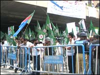 اس سے قبل دو روزہ دورے پر کراچی پہنچنے پر معزول چیف جسٹس کا معزول ججوں، وکلاء، سیاسی جماعتوں اور سول سو سائٹی کے کارکنوں نے استقبال کیا۔ وہ جیسے ہی لاونج سے باہر نکلے تو نعرے لگار کر اور پھول نچھاور کرکے ان کا استقبال کیا گیا۔ و کلاء رہنماؤں کے علاوہ پاکستان تحریک انصاف، جماعت اسلامی، پاسبان، سنی تحریک، پاکستان مسلم لیگ نواز اور سول سوسائٹی کے کارکن بھی موجود تھے۔ ہر سیاسی جماعت اپنے ساتھ چھوٹے ٹرک لائی تھیں، جہاں ایک دوسرے سے سبقت کے لیے سیاسی نغمے چلائے جا رہے تھے اور نعرے بازی کی جارہی تھی۔ معزول چیف جسٹس کے راستے کو پولیس نے بیرئیر لگا کر الگ کردیا تھا۔ وکلاء رہنماؤں کے اعتراض کے باوجود پولیس نے سکیورٹی کی وجہ بتاکر انہیں ہٹانے سے انکار کردیا۔ جسٹس افتخار محمد چودھری جب ایئرپورٹ سے باہر نکلے تو اس دوران ان کے ساتھ گاڑی میں موجود سینیئر وکیل اور سپریم کورٹ بار ایسوسی ایشن کے نائب صدر امداد اعوان کو دل کی تکلیف ہوئی جو کہ جان لیوا ثابت ہوئی۔ چیف جسٹس کی گذرگاہ شاہراہ فیصل پر سیاسی جماعتوں کی جانب سے استقبالیہ کیمپ لگائے گئے تھے۔ پنجابی اسٹوڈنٹس ایسوسی ایشن کی کیمپ پر جب معزول چیف جسٹس کا قافلہ پہچنا تو کارکنوں نے گاڑی روک کر اصرار کیا وہ خطاب کریں۔ ان کی طرف سے سپریم کورٹ بار کے صدر اعتزاز احسن نے خطاب کیا۔ چودھری اعتزاز کے خطاب اور سیاسی جماعتوں کو جھنڈے ہٹانے کی ہدایت کے بعد پنجابی اسٹوڈنٹس ایسوسی ایشن اور جماعت اسلامی کے کارکنوں میں کشیدگی پیدا ہوگئی اور سخت نعرہ بازی کی گئی۔ معزول چیف جسٹس کوئی ساڑہ چار گھنٹے کا سفر طے کرنے کے بعد وہ ہوٹل پہنچے جہاں سے وہ امداد اعوان کے گھر روانہ ہوگئے اور ان کی جنازہ نماز میں شرکت کی۔ امداد اعوان سکھر شہر کے سینئر وکیل تھے اور ان کا شمار سندھ میں وکلاء تحریک کے سرکردہ رہنماؤں میں ہوتا تھا۔ ان کا تعلق پیپلز پارٹی سے تھا اور وہ 1993ء سے 1997 ء تک سینٹ کے رکن بھی رہ چکے ہیں۔ جسٹس افتخار محمد چودھری کل بدھ کے روز سندھ ہائی کورٹ بار کے ہال کی تختی کی نقاب کشائی کریں گے، اس ہال کو ان کے نام سے منسوب کیا گیا ہے۔ جسٹس چودھری جب گزشتہ سال بارہ مئی کو کراچی ایئرپورٹ پر اترے تھے تو پر تشدد واقعات میں درجنوں لوگ ہلاک ہوئے تھے۔ اس روز جب کالونی گیٹ پر پہنچے تھے تو عوامی نیشنل پارٹی کے جلوس پر حملہ ہوچکا تھا اور پل کے نیچے لاشیں اور زخمی پڑے ہوئے، آج اس پل کے اوپر پولیس اہلکار تعینات تھے جبکہ نیچے سے دونوں اطراف سے ٹرئفک رواں دواں تھا۔ گزشتہ اور موجودہ منظر نامے میں صرف اتنی تبدیلی ہوئی ہے کہ اس وقت پاکستان پیپلز پارٹی، عوامی نیشنل پارٹی اور جمعیت علما اسلام استقبالیہ جلوس میں شریک تھیں آج وہ حکومت میں شامل ہیں، ان کے علاوہ دیگر جماعتیں وہ ہی ہیں جو پہلے بھی موجود رہیں۔ ایئرپورٹ پر جب میں نے کچھ وکلا اور سول سوسائیٹی کے کارکنوں سے لوگوں کی کم شرکت کے بارے میں سوال کیا تو ان میں سے کئی نے اس کی وجہ بارہ مئی واقعہ کا خوف قرار دیا، جبکہ ان کی یہ بھی رائے تھی کہ لوگوں کو تنظیمیں متحرک کرنے میں کامیاب نہیں ہوسکی ہیں۔ سپریم کورٹ بار کے سابق صدر منیر ملک کا کہنا ہے کہ وکلا جلوس کو چھوٹے پیمانے پر رکھنا چاہتے تھے کیونکہ وہ کوئی تصادم نہیں چاہتے جس میں کوئی تشدد ہو۔ | اسی بارے میں جسٹس افتخار منگل سے دورہ کراچی پر 26 July, 2008 | پاکستان ’پارلیمان محترم مگر بالادست آئین‘26 July, 2008 | پاکستان پیٹرول قیمتوں کے خلاف درخواست21 July, 2008 | پاکستان قیادت سے اختلاف، پریڈ گراؤنڈ پر دھرنا14 June, 2008 | پاکستان وکلاء لانگ مارچ، آغاز اب سکھر سے06 June, 2008 | پاکستان معزول جج تنخواہوں کے منتظر 27 May, 2008 | پاکستان جسٹس چوہدری کا سفر ٹھنڈا رہا25 May, 2008 | پاکستان ’ججز بحالی کے لیے لانگ مارچ ہوگا‘16 May, 2008 | پاکستان | ||||||||||||||||||||||||||||||||||||||||