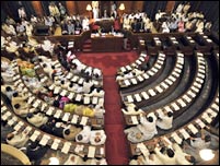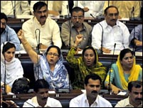سندھ اسمبلی نے صدر پرویز مشرف کے خلاف عدم اعتماد کی تحریک منظور کرلی ہے۔ صوبائی اسمبلی میں صدر مشرف کا دفاع کرنے والا کوئی بھی نہ تھا۔ ایم کیو ایم اور اپوزیشن کے اراکین ایوان میں غیر حاضر رہے۔ حکمران جماعت نے ایم کیو ایم کے اس عمل کو ان کے موقف کی حمایت قرار دیا ہے۔ بدھ کو جیسے ہی صوبائی اسمبلی کا اجلاس شروع ہوا تو صوبائی وزیر قانون ایاز سومرو نے تمام بزنس مؤخر کرکے قرار پیش کرنے کی گزارش کی جسے ایوان نے منظور کرلیا۔ اس کے بعد صوبائی وزیر نے قرار داد پیش کی جس میں صدر پرویز مشرف سے مطالبہ کیا گیا ہے کہ وہ اپنے الیکٹرول کالج سے اعتماد کا ووٹ لیں یا مستعفی ہوجائیں اور اگر وہ ایسا نہیں کرتے توان کا مواخدہ کیا جائے۔