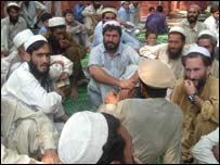 نوشہرہ کے بعد مردان کا رخ کیا۔ لیکن وہاں مقیم تقریبا ساڑھے تین ہزار پناہ گزینوں کی سوچ نوشہرہ سے مختلف پائی۔ یہاں کے پناہ گزین کا کہنا ہے کہ جنگ بندی کے اعلان کے باوجود انہیں باجوڑ سے مزید لڑائی کی اطلاعات مل رہی ہیں لہٰذا ان کا واپسی کا کوئی ارادہ نہیں ہے۔ ایک نجی ہاوسنگ کالونی شیخ یاسین کی چار دیواری میں قائم کیمپ میں گزشتہ دو ہفتوں سے مقیم عنایت کلے کے رحمت خان کا کہنا تھا کہ وہ یہاں بھوکے مرنے کو تیار ہیں لیکن بموں سے نہیں۔ دونوں کیمپوں کے پناہ گزینوں سے گفتگو میں ایک اور اہم بات یہ سامنے آئی کہ ہر کوئی حکومت کو ان کی مشکلات کا ذمہ دار ٹھراتے ہیں لیکن مقامی طالبان کے متعلق کچھ کہنے سے کتراتے ہیں۔ انہیں کریدنے پر کہ حکومت تو ان کو یہاں امداد بھی دے رہی ہے اور باجوڑ میں ان سے لڑ بھی رہی ہے توکیا اس کا شکریہ ادا کرنے کی ضرورت نہیں ان میں سے بعض کا کہنا تھا کہ وہ نہ حکومت کی عملداری چاہتے ہیں نہ طالبان انہیں صرف اور صرف امن چاہیے۔ واپس لوٹنے والے پناہ گزین پرامید ہیں کہ امن پائیدار ہوگا۔ تاہم گل ہارا سے پوچھا کہ اگر جنگ دوبارہ شروع ہوئی تو پھر وہ کیا کریں گی، ان کا جواب تھا ’اگر طاقت ہوئی تو واپس آجائیں گے ورنہ وہیں مرکھپ جائیں گے۔‘ |