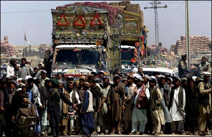 ان کے مطابق’ پاکستان سے افغانستان کے لیے تعمیراتی سامان سیمنٹ، لوہے کے علاوہ خوردونوش کی اشیاء لیجائی جاتی ہیں مگر افغان حکومت نے پاکستانی سامان پر دس سے پندرہ فیصد تک ٹیکس لگا یا ہے جس سے افغان مارکیٹ میں پاکستان کا نفوذ کم جبکہ دیگر پڑوسی ملکوں ایران اور بھارت کا زیادہ ہوگیا ہے۔‘ پاکستان اور افغانستان کے درمیان سرکاری طور پر ہونے والی زیادہ تر تجارت طورخم اور چمن بارڈر کے ذریعے ہوتی ہے مگر پاکستان کے سات قبائلی ایجنسیوں کے لوگ سرحد پار افغانوں کے ساتھ چھوٹے پیمانے پر تجارت کرنے کے لیے روایتی راستے استعمال کرتے ہیں۔ پاک افغان تجارت سے وابستہ تاجروں کا کہنا ہے کہ دونوں ملکوں بالخصوص پاکستان میں مبینہ عسکریت پسندوں کی کارروائیوں نے ان کی تجارتی سرگرمیوں کو دھچکا پہنچایا ہے۔ ان کے بقول اس وقت سینکڑوں ٹرانسپورٹر پاکستان کے راستے افغانستان میں تعینات نیٹو اور امریکی فورسز کو روزمرہ ضروریات کی اشیاء اور تیل فراہم کرنے کے کاروبار سے منسلک ہیں مگر تجارتی راستوں پر مبینہ شدت پسندوں کی کاروائیوں نے ان تجارتی راستوں کو غیر محفوظ بنادیا ہے۔ قبائلی علاقوں کے ٹرانسپورٹ یونین کے صدر اختر نواز کا الزام ہے کہ خیبر ایجنسی میں متعدد تنظیموں کی سرگرمیوں نے ان کی تجارت پر منفی اثرات ڈالا ہے۔ ان کے بقول’ ہمارا کاروبار اس لیے روز بروز خراب ہورہا ہے کیونکہ مبینہ شدت پسند تنظیمیں ہم سے ٹیکس وصول کرتے ہیں۔ ایک ٹرک پر ہمیں دس ہزار روپے دینے پڑتے ہیں۔‘ انہوں نے مزید کہا کہ اگر انہوں نے ٹیکس دینے سے انکار کردیا تو مبینہ شدت پسند تنظیمیں ان کے ٹرکوں کو یہ کہتے ہوئے نذرِ آتش کرتے ہیں کہ ’ آپ لوگ افغانستان میں تعینات اتحادی افواج کو سامان پہنچا کر ایک طریقے سےیہودیوں کی مدد کررہےہیں۔‘ اگرچہ اختر نواز نے کسی مخصوص تنظیم یا گروپ کا نام نہیں لیا البتہ آج تک کسی بھی تنظیم نے باقاعدہ طور پر ان الزامات کی تردید بھی نہیں کی ہے۔ آئل ٹینکر ایسوسی ایشن کے رہنماء شاکر آفریدی کا کہنا ہے کہ افغانستان میں اتحادی افواج کے لیے جنگی سازمان، روزمرہ استعمال کی اشیاء اورتیل کی ترسیل کے لیے چار سو کے قریب کنٹینر اور آئل ٹینکرروزانہ افغانستان جاتے ہیں تاہم بقول ان کے راستے میں سکیورٹی کی درپیش صورتحال نے انہیں سخت مشکلات سے دوچار کردیا ہے۔ ان کے مطابق’ کراچی سے طورخم کے راستے تیل افغانستان لیجاتے وقت راستے میں ہی نامعلوم مسلح افراد حملہ کرکے ڈرائیور کو ٹینکر سمیت اغواء کرلیتا ہے۔ہماری اب تک درجنوں ٹینکرز جلائے گئے ہیں جس میں متعدد افراد ہلاک ہوئے ہیں۔ان واقعات میں روز بروز اضافہ ہورہاہے مگر حکومت کی جانب سے ہمیں کسی قسم کی کوئی سکیورٹی فراہم نہیں کی جاتی ہے۔‘ |