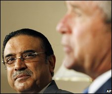 پاکستان کے صدر آصف زرداری نے نیو یارک میں امریکی صدر جارج بش سے ملاقات کی ہے جس سے قبل امریکی صدر نے کہا کہ پاکستان کی سلامتی کے لیے امریکہ پاکستان کی مدد کرنا چاہتا ہے۔ دونوں رہنماؤں کے درمیان اقوامِ متحدہ کی جنرل اسمبلی کے اجلاس سے قبل ہونے والی اس ملاقات کی تفصیل ابھی تک سامنے نہیں آئی لیکن آصف زرداری سے بات چیت سے کچھ پہلے صدر بش نے کہا کہ وہ پاکستان کی حفاظت کے لیے مدد کرنا چاہتے ہیں۔ آصف زرداری اور جارج بش کی ملاقات ایسے موقع پر ہوئی ہے جب پاکستان میں امریکہ کے خلاف اس بات پر شدید غصہ ہے کہ وہ افغانستان کی سرحد عبور کر کے پاکستان کی خود مختاری کی خلاف ورزی کر رہا ہے۔ صدر زرداری سے ملاقات سے قبل مختصر گفتگو کے دوران صدر بش نے پاکستان کے شمال مغربی علاقے میں شدت پسندوں کے خلاف امریکی فضائی حملوں کے متنازع موضوع کا ذکر کرنے سے اجتناب کیا۔ صدر بش کا کہنا تھا: ’پاکستان کی خود مختاری اور اس کے تحفظ کے بارے میں آپ کے الفاظ بہت زوردار ہیں اور امریکہ (پاکستان کی) مدد کرنا چاہتا ہے‘۔ صدر زرداری اور صدر بش کی ملاقات کی تفصیل ابھی میڈیا کو فراہم نہیں کی گئی۔