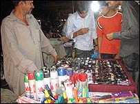 عمر کے اسٹال سے کچھ فاصلے پر قریب ہی سوات سے تعلق رکھنے والے نوجوان محمد سلیم نے دھوپ کے چشموں کا اسٹال لگایا ہوا تھا۔ چینی مصنوعات کی مقبولیت کی اس کی اپنی توجیح تھی۔ ’پاکستان میں اس لیے غربت ہے کیونکہ پاکستان کچھ بنا ہی نہیں سکتا اس لئے سب کچھ چائنا کا چل رہا ہے پاکستان میں۔‘ اس نے بتایا کہ اس کے پاس پچیس روپے سے ڈیڑھ سو روپے تک کا چشمہ دستیاب ہے اس کے باوجود لوگ بھاؤ تاؤ کرتے ہیں۔ ’سستے والا بھی ہوتا ہے مہنگا والا بھی ہوتا ہے، دن میں دس پندرہ چشمے بک جاتے ہیں، زیادہ تر غریب لوگ خریدتے ہیں، کیونکہ پاکستان میں غریب غریب سے غریب تر ہورہا ہے اور امیر امیر سے امیر تر۔‘ سلیم میرے سوال کے جواب میں اپنی بھڑاس بھی نکال رہا تھا۔ غربت کا پہلا نشانہ معیار زندگی ہوتا ہے اسی لیے شاید ان بازاروں کا رخ کرنے والے بہت سے لوگوں کے لیے اشیاء کے معیار کی اہمیت بھی نہیں۔
