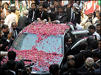 واضح رہے کہ سپریم کورٹ بار ایسوسی ایشن کے انتخابات 28 اکتوبر کو ہو رہے ہیں اور مشہور وکیل رہنما علی احمد کرد چوہدری اعتزاز احسن گروپ کی طرف سے ان انتخابات میں صدارت کے امیدوار ہیں۔ سیکورٹی اقدامات کی وجہ سے متعدد ارکان پارلیمنٹ کو بھی شاہراہ دستور پر جانے کی اجازت نہیں دی گئی اور پی پی پی کے رہنما مخدوم امین فہیم اسی راستے سے گزر کر پارلیمان کے اجلاس میں جانا چاہ رہے تھے جس پر معزول چیف جسٹس افتخار جا رہے تھے لیکن راستے بند ہونے کی وجہ سے انہیں بھی روک دیا گیا۔ مخدوم امین فہیم روکے جانے کے بعد پارلیمان کے مشترکہ اجلاس میں شرکت کے بغیر لوٹ گئے۔ | اسی بارے میں ’افتخار چوہدری سیاسی نہیں‘25 August, 2008 | پاکستان جسٹس افتخار منگل سے دورہ کراچی پر 26 July, 2008 | پاکستان منزل اب دور نہیں: جسٹس افتخار12 June, 2008 | پاکستان آزاد عدلیہ، جمہوریت مستحکم: افتخار چودھری31 May, 2008 | پاکستان افتخار چوہدری کی خاموش واپسی04 April, 2008 | پاکستان ’جسٹس افتخار سے نہیں مل سکتے‘06 December, 2007 | پاکستان آئین تار تار ہے، قربانیوں کا وقت ہے، لوگ اٹھ کھڑے ہوں: جسٹس افتخار 06 November, 2007 | پاکستان | ||||||||||||||||||||||||||||||||||||||||