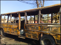 | | | نجی تعلیمی ادارے کی بس جسے نظرِ آتش کر دیا گیا |