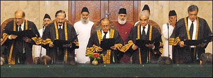 وکلاء برادری کی طرف سے معزول چیف جسٹس افتخار محمد چوہدری سمیت اعلی عدالتوں کے معزول ججوں کی بحالی کے لیے 9 مارچ کو اسلام آباد میں لانگ مارچ کے بارے میں ایک سوال کے جواب میں وزیر قانون نے کہا کہ سڑکوں میں مظاہرے کرنے سے ججوں کی بحالی کا مسئلہ حل نہیں ہو سکتا۔ اُنہوں نے دعویٰ کیا کہ سپریم کورٹ بار ایسوسی ایشن کے صدر علی احمد کُرد اور دوسرے وکلاء رہنماؤں کو مذاکرات کی دعوت دی تھی لیکن انہوں نے قبول نہیں کی۔ واضح رہے کہ قومی اسمبلی میں حزب اختلاف کی جماعت پاکستان مسلم لیگ اور دیگر سیاسی جماعتوں نے اس لانگ مارچ میں وکلاء کا ساتھ دینے کا اعلان کیا ہے۔ سابق صدر جنرل ریٹائرڈ پرویز مشرف نے 9 مارچ سنہ دو ہزار سات کو معزول چیف جسٹس افتخار محمد چوہدری کے خلاف ریفرنس سپریم جوڈیشل کونسل کو بھیجا تھا۔ ایک سوال کے جواب میں فاروق ایچ نائیک نے کہا کہ قومی اسمبلی میں حزب اختلاف پاکستان مسلم لیگ نون کی طرف سے سترہویں ترمیم کے خاتمے کے لیے 18 ویں ترمیم کا جو مسودہ حکمراں جماعت کو دیا گیا ہے اس میں ججوں کی تعیناتی کا کوئی ذکر نہیں ہے۔ ایک سوال پر کہ اُنہوں نے معزول چیف جسٹس افتخار محمد چوہدری کو بطور چیف جسٹس کی تنخواہ دی تھی اس پر وزیر قانون کا کہنا تھا کہ ججوں کو کنسولیڈیٹڈ فنڈز سے تنخواہ نہیں دی گئی۔ واضح رہے کہ سابق صدر پرویز مشرف کے تین نومبر کے اقدام کے بعد معزول چیف جسٹس افتخار محمد چوہدری سمیت اعلیٰ عدالتوں کے 60 کے قریب ججوں نے حلف نہیں اُٹھایا تھا تاہم پاکستان پیپلز پارٹی کے برسر اقتدار آنے کے بعد ان میں سے متعدد ججوں نے دوبارہ حلف اُٹھا لیا ہے۔ سپریم کورٹ کے موجودہ چیف جسٹس عبدالحمید ڈوگر اس سال مارچ میں ریٹائرہو رہے ہیں جبکہ سردار رضا اُن کے بعد سپریم کورٹ کے سب سے سینیئر جج ہیں۔ سردار رضا نے 3 نومبر کو ملک میں ایمرجنسی کے بعد پی سی او کے تحت حلف نہیں اُٹھایا تھا۔ |
