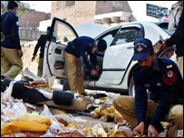 صوبہ سرحد کے ضلع لکی مروت میں ایک کار بم دھماکے میں دو افراد ہلاک ہوگئے ہیں۔ پولیس کے مطابق ہلاک ہونے والوں میں ایک خودکش حملہ آور بھی شامل ہے۔ پولیس نے تباہ شدہ کار اور لاشوں کے ٹکڑوں کو اپنے قبضہ میں لے لیا ہے۔ پولیس کے سربراہ عمران خان نے بی بی سی کو بتایا کہ سنچر کی صبح پانچ بجے ضلع لکی مروت کے سب ڈویژن تجوڑی کے علاقے آدم زئی میں ایک چلتی گاڑی میں اچانک ایک زودار دھماکہ ہوا جس کے نتیجہ میں دو افراد ہلاک ہوگئے۔ انہوں نے خدشہ ظاہر کیا کہ گاڑی میں ایک خودکش حملہ آور موجود تھا جو کسی مقام پر پہنچنا چاہتا تھا۔ پولیس کا کہنا ہے کہ دھماکے میں گاڑی بھی مکمل طور پر تباہ ہوگئی ہے اور لاشوں کے ٹکڑے گاڑی کے ٹکڑوں سے زیادہ بکھرے پڑے تھے۔ موقع پر موجود ایک پولیس اہلکار نے بتایا کہ لاشوں اور تباہ شدہ گاڑی کا ملبہ پولیس نے اپنے قبضے میں لے لیا ہے اور تحقیقات کے لیے لکی مروت لے جایا جارہا ہے۔ ضلع لکی مروت نیم قبائلی علاقوں کے ساتھ متصل ایک ضلع ہے جہاں پہلے بھی قانوں نافذ کرنے والے اداروں پر حملے ہوچکے ہیں جن میں سکیورٹی فورسز کے اہلکاروں کے علاوہ عام شہری بھی مارے گئے ہیں۔ | اسی بارے میں ڈی آئی خان میں حالت کشیدہ20 August, 2008 | پاکستان بھکر حملے میں ہمارا ہاتھ نہیں: طالبان07 October, 2008 | پاکستان اسلام آباد، دیر میں پولیس پر حملے09 October, 2008 | پاکستان پشاور:بین الصوبائی گیمز کے بعد دھماکہ11 November, 2008 | پاکستان خود کش حملہ آور کی تصویر جاری19 November, 2008 | پاکستان پشاور: بڑی تباہی، ہلاکتیں اٹھائیس06 December, 2008 | پاکستان | ||||||||||||||||||||||||||||||||||||||||