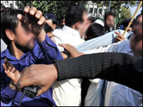 پنجاب کے شہروں ملتان اور جھنگ میں پیپلز پارٹی اور مسلم لیگ نون نے ایک دوسرے کے خلاف جلوس نکالے ملتان میں دونوں پارٹیوں کے کارکنوں میں تصادم اور ہاتھا پائی ہوئی جبکہ جھنگ کی ریلیاں پرامن رہیں۔ پیپلز پارٹی نے اپنی مرحومہ لیڈر بےنظیر بھٹو کی راولپنڈی والی یادگار کو نقصان پہنچانے کے خلاف ملتان پریس کلب سے احتجاجی ریلی نکالی۔ دوسری طرف مسلم لیگی کارکن پنجاب حکومت کی برطرفی کے خلاف اندرون شہر میں جلوس نکال رہے تھے۔ دونوں ریلیاں ایک ہی وقت میں گھنٹہ گھر چوک پہنچیں تو مخالفانہ نعرے بازی شروع ہوگئی ہے جو کچھ دیر بعد ہاتھا پائی اور دوطرفہ خشت باری میں تبدیل ہوگئی۔ پولیس اور مقامی لیڈروں کی مداخلت سے لڑائی کا خاتمہ ہوا مسلم لیگی کارکنوں نے ایک بس کو توڑ دیا۔اندرون شہر کی دکانیں بند ہیں اور پولیس کی نفری میں اضافہ کردیا گیا ہے۔ جھنگ میں مسلم لیگ نون کی ریلی شہر کے مختلف علاقوں سے ہوتے ہوئے بھوانہ تھانہ کے سامنے اختتام پذیر ہوئی جہاں دھرنا دیا گیا جبکہ پیپلز پارٹی کی ریلی کا اختتام فوارہ چوک میں ہوا۔ لاہور میں رائے ونڈ کے شریف فارم ہاؤس میں نواز شریف کی زیر صدارت مسلم لیگ نون لاہور کے عہدیداروں کا اجلاس ہوا جس میں فیصلہ کیا گیا کہ شہر بھر میں احتجاجی بھوک ہڑتالی کیمپ لگائے جائیں گے۔ |