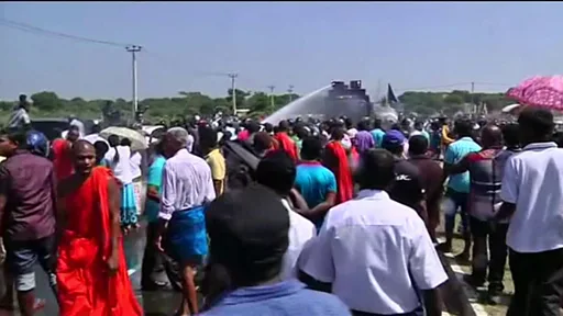 پولیس نے مظاہروں پر آنسو گیس کا استعمال کیا اور اس حوالے سے منعقد تقریب بھی تاخیر کا شکار ہوئی جس میں وزیراعظم رنیل وکرماسنگھے نے شرکت کرنا تھی۔