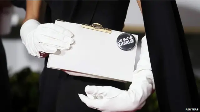 اخبار نے جارج کلونی کی تصاویر کے اوپر نظرگیر جملہ چسپاں کیا تھا ’من ہم چارلی ہستم‘۔