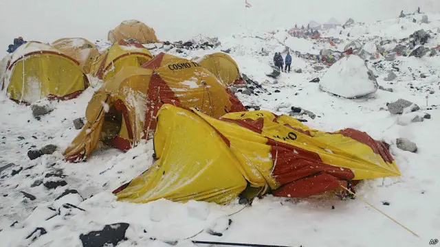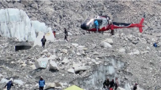 خبر رساں ادارے ایسوسی ایٹڈ پریس کے مطابق ماؤنٹ ایورسٹ میں برفانی تودہ گرنے کے نتیجے میں بیس کیمپ میں موجود کوہ پیماؤوں اور دیگر اراکین کا پہلے گروہ کو اتوار کو کٹھمنڈو پہنچایا گیا ہے۔