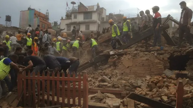 نیپالی فوج کے ایک افسر نے خبر رساں ادارے روئٹرز کو بتایا کہ انھیں کھٹمنڈو میں واقع ایک تین منزلہ عمارت کے ملبے تلے دبے افراد کو نکالنے کے لیے سرنگ بنانا پڑی کیونکہ قدیم شہر کی تنگ گلیوں میں بلڈوزو لے کر جانا ناممکن تھا۔