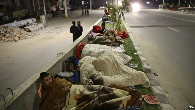 کٹھمنڈو میں بی بی سی کے نامہ نگار کا کہنا ہے کہ متاثرین کے لیے بنائی گئی خیمہ بستی میں ایک ہزار سے زیادہ افراد پناہ لیے ہوئے ہیں اور زلزلے کے بعد آفٹر شاکس کا سلسلہ جاری ہے، اس لیے لوگ خوف زدہ ہیں۔