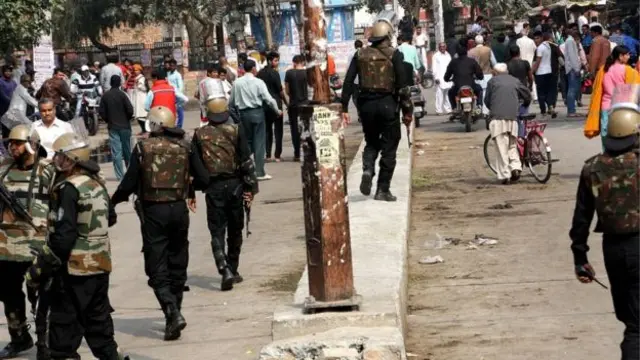 جوان لڑکوں پر مشتمل ایک گروہ ہاتھوں میں لاٹھیاں اٹھائے جارحانہ انداز میں روڈ پر گشت کر رہا ہے۔ صرف پیدل آنے جانے والوں کو گزرنے دیا جا رہا ہے۔