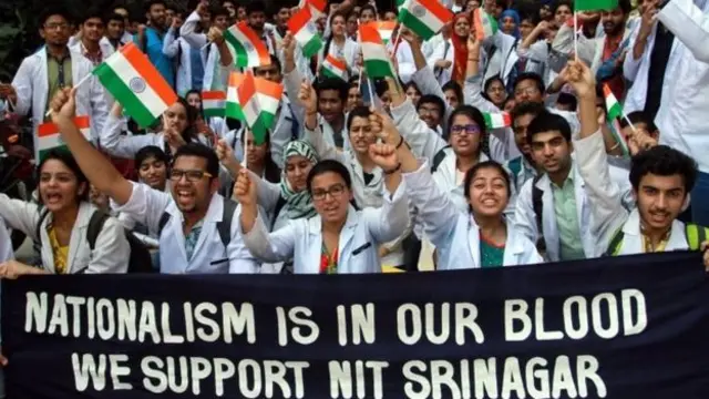طلبا اور اساتذہ کے درمیان سرینگر شہر کے نیشنل انسٹیٹیوٹ آف ٹیکنالوجی میں جھڑپ ہوئی جس میں پولیس نے طلبا کو منتشر کرنے کے لیے لاٹھیوں کا استعمال کیا۔ سینیئر صحافی شجاعت بخاری نے اب تک وقوع پذیر ہونے والے واقعات کو بیان کیا ہے۔