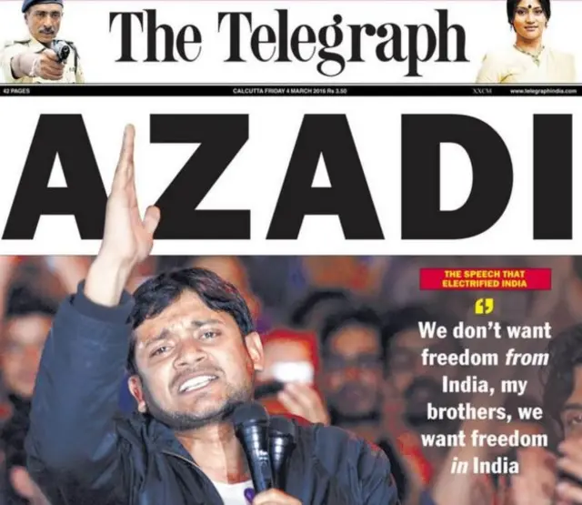 جب انڈیا کی ایک یونیورسٹی میں طالب علم لیڈر پر ’آزادی‘ کے نعرے پر غداری مقدمہ بنا تو اس نے ملک کو جھنجوڑ کر رکھ دیا۔ اس تقریر میں میوزک ڈالا گیا ہے اور ترانے بنائے گئے ہیں۔