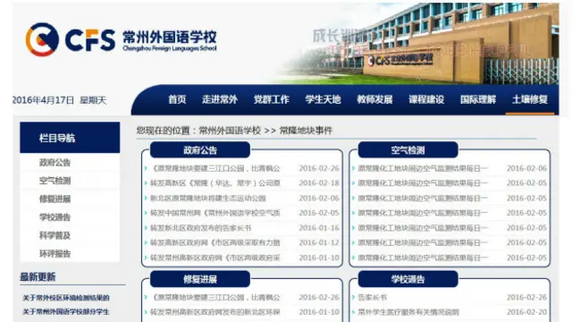 خیال رہے کہ شانگزو فارن لینگویج سکول حال ہی میں بند ہونے والی ایک کیمیائی فیکٹری کے پاس ہی تعمیر کیا گیا تھا۔