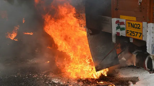 پیر کو پولیس نے جب مظاہرین پر فائرنگ کی تو ایک شخص ہلاک ہوا۔ تمل ناڈو کی نمبر پلیٹوں والے ٹرکوں اور بسوں کو آگ لگائی گئی ہے۔ سکول اور کالج سمیت متعدد دفاتر بند ہیں۔