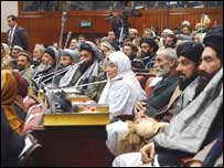 افغانستان کے دارالحکومت کابل میں لگ بھگ تین عشروں کے بعد وجود میں آنے والی پارلیمان کا افتتاحی اجلاس پیر کو منعقد ہوا جس میں صدر حامد کرزئی نے اراکین سے حلف لیا۔ افتتاحی اجلاس کے لیے سکیورٹی کے سخت انتظامات کیے گئے تھے اور اس کے اہم غیرملکی شرکاء میں امریکی نائب صدر ڈِک چینی بھی شامل تھے۔ تقریب میں افغانستان کے سابق صدرِ مملکت ظاہر شاہ کی ایک مختصر تقریر کے بعد صدر حامد کرزئی نے تین سو اکیاون اراکین پارلیمان سے حلف لیا۔ انیس سو تہتر میں ایک بغاوت کے دوران ظاہر شاہ کی حکومت برطرف کردی گئی تھی اور اس کے بعد سے ملک خانہ جنگی اور بیرونی طاقتوں کی مداخلت کا شکار رہا تھا۔ حامد کرزئی نے اراکین پارلیمان سے کہا کہ نئی پارلیمان کا افتتاحی اجلاس ’جمہوریت کی جانب ایک پیش قدمی‘ اور قومی اتحاد کا مظہر ہے۔ انہوں نے کہا: ’اس اجتماع سے یہ ثابت ہوتا ہے کہ افغانستان کے عوام متحد ہیں۔ جمہوریت کی جانب یہ ایک اہم قدم ہے۔‘
