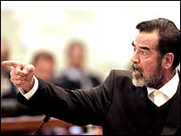 اتوار کو معزول عراقی صدر صدام حسین کے مقدے کی سماعت کے دوران افراتفری اور بدنظمی کے واقعات ہوئے ہیں جن کے بعد صدام حسین اور وکلائے صفائی عدالت سے واک آؤٹ کرگئے ہیں۔ یہ بھی اطلاعات ہیں کہ عدالت نے مقدمے کا دفاع کرنے کے لیے وکلاء کی نئی ٹیم مقرر کی ہے جس پر مزید احتجاج ہوا ہے۔ عراق کے سابق نائب صدر طحہٰ یاسین رمضان کے بارے میں پتہ چلا ہے کہ وہ بھی احتجاج کرتے ہوئے عدالت سے واک آؤٹ کر گئے ہیں۔ صدام حسین کے مقدمے کی سماعت کئی دفعہ مؤخر ہونے کے بعد اتوار کو نئے جج کی سربراہی میں شروع ہوئی لیکن گڑبڑ اس وقت ہوئی جب عدالت کے سربراہ نے کہا کہ وہ کسی بھی قیمت پرملزموں کی سیاسی تقریریں برداشت نہیں کریں گے۔ ایک موقع پر صدام حسین کے سوتیلے بھائی التکریتی اپنی صحت کے بارے میں عدالت سے شکایت کرنا چاہتے تھے مگر نئے جج نے ان کی بات پر زیادہ توجہ نہ دی۔ التکریتی نے نئے جج کی اتھارٹی تسلیم کرنے سے بھی انکار کیا جس پر جج رؤف عبدالرحمن نے اپنے اختیارات استعمال کرتے ہوئے حکم دیا کہ التکریتی کو عدالت سے باہر نکال دیا جائے۔