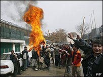 حکام کا یہ بھی کہنا ہے کہ ہجوم میں موجود طالبان اور القاعدہ کے ارکان ان اموات کے ذمہ دار ہیں کیونکہ انہوں نے لوگوں کو اکسایا تھا۔ دارالحکومت کابل میں بھی تقریباً دو سو افراد نے ڈنمارک کے سفارتخانے کے باہر احتجاجی مظاہرہ کیا۔ قندھار اور مزار شریف میں بھی سینکڑوں افراد نے مظاہرے کیے۔ ان کارٹون کی اشاعت کے خلاف دنیا کے مختلف ممالک میں تقریباً ایک ہفتے سے احتجاج جاری ہے۔ افغانستان اور صومالیہ کے علاوہ ایران کےدارالحکومت تہران، انڈونیشیا، تھائی لینڈ، نیوزی لینڈ اور بھارت میں بھی احتجاجی مظاہرے ہوئے ہیں۔ بھارت میں پولیس نے مظاہرین کو منتشر کرنے کے لیے آنسوگیس کے گولے پھینکے۔ |