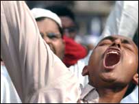 ڈنمارک میں شائع ہونے والے متنازعہ کارٹون کے خلاف بنگلہ دیش میں کئی اسلامی تنظیوں نے مظاہرے کیے ہیں۔ دارالحکومت ڈھاکہ کی مرکزی مسجد کے باہر نماز جعمہ کے بعد کئی مظاہرے ہوئے۔ اس موقع پر ڈھاکہ میں احتجاج کرنے والے لگ بھگ پانچ سو مسلمانوں نے ڈنمارک اور مغربی ممالک کے خلاف نعرے لگائے۔ مقررین نے ڈنمارک کی مصنوعات کے بائیکاٹ کی اپیل کی اور ڈنمارک کے پرچم بھی جلائے۔ عینی شاہدین کا کہنا ہے کہ آج کے مظاہرے گزشتہ ہفتے کے مقابلے میں چھوٹے پیمانے پر ہوئے۔ | اسی بارے میں ’کارٹون چھاپنا غلط فیصلہ نہیں تھا‘10 February, 2006 | آس پاس عاشور: کارٹونوں پر شدید احتجاج10 February, 2006 | آس پاس | ||||||||||||||||||||||||||||||||||||||||
