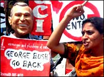 افغانستان میں چند گھنٹے گزارنے کے بعد امریکی صدر جارج بش تین روزہ دورے پر دلی پہنچ گئے ہیں۔ صدر بش کی انڈیا آمد پر وہاں زبردست احتجاجی مظاہرے ہوئے ہیں۔ ان مظاہروں کا اہتمام کئی تنظیموں نے مل کر کیا تھا۔ تین روزہ دورے میں وہ ہندوستان کی قیادت سے اقتصادی اور تجارتی معاہدوں کے ساتھ ساتھ ایک جوہری معاہدے پر بھی بات چیت کریں گے۔ صدر جارج بش کے ساتھ اعلیٰ اہلکاروں کا ایک وفد بھی ہندوستان آ یا۔ اس وفد میں وزير خارجہ کونڈولیزا رائس اور نیشنل سکیورٹی ایڈوائزر سٹیو ہیڈلی سمیت امریکی انتظامیہ کے متعدد اعلیٰ اہلکار شامل ہیں۔ اپنے قیام کے دوران وہ ہندوستان کے صدر اور وزیر اعظم سمیت اعلیٰ رہنماؤں اور صنعتکاروں سے ملاقات کریں گے۔ شیام سرن نے مزید بتایا کہ صدر بش وزير اعظم سے ملاقات کے دوران کئی اقتصادی اور تجارتی معاملات پر بات چیت کريں گے۔ اس سے قبل امریکی صدر جارج ڈبلیو بش نے جو انڈیا کے دورے سے پہلے بدھ کو اچانک افغانستان پہنچے تھے،اس اعتماد کا اظہار کیا کہ اسامہ بن لادن کو انصاف کا سامنا کرنا پڑے گا۔ کابل میں افغان صدر حامد کرزئی کے ساتھ ایک مشترکہ اخباری کانفرنس میں سوالوں کا جواب دیتے ہوئے امریکی صدر نے کہا کہ افغان عوام کا جمہوریت کی جڑیں مضبوط کرنے کا عزم دنیا کےدیگر ممالک کے لوگوں کے لیئے تحریک کا باعث ہے۔