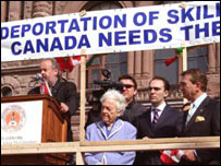 کینیڈا کے شہر ٹورانٹو میں غیرقانونی تارکین وطن خصوصا کنسٹرکشن ورکرز کے حق میں یونیورسل ورکرز یونین کے تعاون سے ایک زبردست مظاہرہ ہوا۔ ٹورانٹو ڈاؤن ٹاؤن میں واقع صوبائی اسمبلی کوئنز پارک کے سامنے منعقد ہونے والی اس پرامن ریلی میں صوبہ انٹاریو کے مختلف شہروں ٹورانٹو، مسی ساگا، وان، ہملٹن، برامپٹن، لندن، سکاربورو سے بڑی تعداد میں لوگ مظاہرے میں شریک ہوئے۔ مظاہرین نے حالیہ دنوں میں کینیڈا سے ملک بدر کیے جانے والے غیرقانونی تارکین وطن کے حق میں زبردست نعرے لگائے اور حکومت کی ان کارروائیوں کی زبردست مذمت کی۔ ریلی کا آغاز کینیڈا کا قومی ترانہ بجاکر کیا گیا۔ مظاہرین اور مقررین نےغیرقانونی تارکین وطن کو ملک بدر کرنے کے خلاف اپنا احتجاج جاری رکھنے کا اعلان کیا۔ کوئنز پارک کے سامنے ہونے والی اس ریلی میں ہزاروں افراد نے شرکت کی۔ شرکاء نے رنگ برنگے جھنڈے اور بینر اٹھا رکھے تھے۔ ان بڑے بڑے پوسٹروں پر مختلف پیغامات درج تھے۔ مثلا ایک پوسٹر پر لکھا تھا: ’ہمیں کینیڈا میں بہتر مستقبل کیلئے کام کرنے دو۔‘ ایک سکولی طالبہ نے پوسٹر اٹھا رکھا تھا جس پر یہ نعرہ درج تھا: ’ملک بدر کی جانے والی پرتگالی فیملی کو واپس لاؤ۔‘ ایک پوسٹر پر لکھا تھا: ’ملک بدر کئے جانے والوں کا تعلق یہاں سے ہے ناکہ وہاں سے۔‘ ایک اور پوسٹر کے مطابق ’ایماندار اور محنتی لوگو ں کو کینیڈا میں رہنے دو۔‘ تمام مقررین نے انگریزی اور اپنی مادری زبانوں میں مظاہرین سے خطاب کیا۔ مقررین نے مظاہرین کا شکریہ ادا کیا اور کہا کہ ’اس ملک کے لیے آپ کی خدمات قابل تعریف ہیں۔ یہاں آکر آپ نے ملک کے تمام لوگوں کے ساتھ ملکر آج آواز اٹھائی ہے اور یہ مطالبہ کیا ہے کہ کینیڈا کی حکومت امیگریشن قوانین میں تبدیلی کرے اور انہیں زیادہ منصفانہ بنائے۔‘ رکن پارلیمنٹ واجد علی خان نے کہا: ’مجھے پورے مجمع میں کوئی دہشت گرد نظر نہیں آرہا تو پھر حکومت کیوں معصوم لوگوں کو ملک بدر کررہی ہے۔‘ سٹی آف مسی ساگا کی میئر نے اپنے خطاب میں کہا کہ اس ملک میں تیس سال سے امیگریشن سیسٹم میں موجود نقائص کو بہتر بنانے کی شدید ضرورت ہے۔ اگر یہ سیسٹم ٹھیک ہوتا تو آج ہم کو یہاں جمع ہونے کی ضرورت نہ پڑتی۔ صوبہ انٹاریو کے وزیر امیگریشن مائیکل کول نے اپنی تقریر میں کہا کہ ماضی کے وفاقی وزراء امیگریشن سے متعلق اپنے وعدوں پر پورے نہ اترے جس کا نتیجہ یہ ہے کہ پڑھے لکھے لوگوں کے ساتھ کیا حال ہورہا ہے۔ مقررین نے کہا کہ ’اگر مزدوری کرنا جرم ہے تو ہم سب مجرم ہیں۔‘ یاد رہے کہ کینیڈا کے ترقی یافتہ صوبے انٹاریو میں ہر سال ڈیڑھ لاکھ کے قریب امیگرنٹس آرہے ہیں۔ ان میں کنسٹرکشن ورکرز اہم کردار ادا کررہے ہیں۔ گزشتہ چند ہفتوں میں کینیڈا سے سینکڑوں افراد کو جو کہ غیرقانونی طور پر مقیم تھے ملک بدر کردیا گیا ہے۔ | اسی بارے میں کینیڈا کے انتخابات، ایشیائی رنگ20 January, 2006 | آس پاس ائیر انڈیا دھماکہ، فیصلہ بدھ کو14 March, 2005 | آس پاس کینیڈا:اپوزیشن کی جیت24 January, 2006 | آس پاس ’دہشت گردوں کی پناہ گاہ نہیں ہیں‘11 December, 2003 | آس پاس امریکہ کے بیس شہروں میں مظاہرے11 April, 2006 | آس پاس | ||||||||||||||||||||||||||||||||||||||||