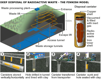 تابکار ایٹمی فضلے کو ٹھکانے لگانے سے متعلق برطانوی کمیٹی نے کہا ہے کہ اس مسئلے کا دیرپا حل یہی ہے کہ فضلے کو زیرِ زمین گہرائی میں دفن کر دیا جائے۔ کمیٹی کی رپورٹ میں اس فضلے کو سمندر کی تہہ میں پھینکنے یا پھر سورج کی جانب بھیج دینے کے خیال کو رد کر دیا ہے۔ رپورٹ میں کہا گیا ہے کہ فضلے کو سخت دھاتی کنٹینروں میں بند کرنے کے بعد زمین کے اندر کئی سو میٹرگہرائی میں دفن کر دیا جائے اور برطانیہ کی ایک تہائی زمین اس قسم کے کام کے لیئے موزوں ہے۔ اس کمیٹی کے سربراہ گورڈن میکیرن کا کہنا تھا کہ’گزشتہ پچاس برس سے برطانیہ بنا یہ سوچے تابکار ایٹمی فضلہ پیدا کر رہا ہے کہ اسے کیسے ٹھکانے لگایا جا سکتا ہے اور ہم مانیں یا نہ مانیں یہ فضلہ ایک حقیقت ہے اور ہمیں اس کا حل ڈھونڈنا ہوگا‘۔ ان کا کہنا تھا کہ’ کمیٹی کو یقین ہے کہ فضلے کی ارضیاتی تلفی بہترین حل ہے۔ یہ وہ حل ہے جو کہ عوام کی بہتری اور ماحول کی حفاظت کو مدِ نظر رکھتے ہوئےنکالا گیا ہے‘۔ مذکورہ کمیٹی تین سالہ تحقیق کے بعد اس نتیجے پر بھی پہنچی ہے کہ زمین کی گہرائی میں تلفی کے انتظامات میں خاصا وقت لگنے کی وجہ سے اس مواد کو فوری طور پر تلف کرنے کے لیئے بھی اقدامات کی ضرورت ہے۔ رپورٹ میں کہا گیا ہے کہ تکنیکی مشکلات اور عوام کی جانب سے اس عمل کی اجازت ملنے میں دشواری کی بنا پر تابکار مادے کی تلفی کے مستقل انتظامات میں کئی عشرے لگ سکتے ہیں۔ اعدادوشمار کے مطابق برطانیہ میں اس وقت چار لاکھ ستّر ہزار کیوبک میٹر ایٹمی مواد موجود ہے جس میں یورینیم اور پلوٹونیم جیسے انتہائی تابکار مادے بھی شامل ہیں جنہیں تاحال فضلہ قرار نہیں دیا گیا ہے کیونکہ انہیں دوبارہ بطور جوہری ایندھن استعمال کیا جا سکتا ہے۔ تابکار ایٹمی فضلے کو ٹھکانے لگانے کا عمل