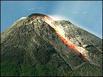 تاہم نامہ نگار کا کہنا ہے کہ انتہائی خطرے کے انتباہ کے باعث ان افراد کے پاس علاقے چھوڑنے کے علاوہ کوئی چارہ نہیں ہے۔ مقامی ٹی وی لاوے کی ایک نہر بہنے کا منظر مسلسل دکھا رہے ہیں جس میں لاوہ بہہ کر چوٹی سے نیچے جارہا ہے۔ لیکن سائنسدانوں کے خیال میں سب سے زیادہ خطرہ آتش فشاس سے اٹھنے والی گیسوں سے ہوسکتا ہے۔ لاوے کا بہاؤ جمعرات سے شروع ہوا تھا۔ انڈونیشیا کے نائب صدر نے جمعرات کو علاقے کا دورہ کیا تھا اور حکم دیا تھا کہ علاقے کی 50 فیصد آبادی کو فوری طور پر دیگر علاقوں میں منتقل کیا جائے۔ انڈونیشیا کا علاقہ ایشیا پیسیفک کے ’آگ کے دائرے‘ میں آتا ہے اور اس میں 129 ’زندہ‘ آتش فشاں ہیں۔ انڈونیشیا میں سب سے خطرناک آتش فشاں 1930 میں پھٹا تھا اور اس سے 1300 افراد ہلاک ہوئے تھے۔ | اسی بارے میں آئس لینڈ ، آتش فشاں کی طاقت04 November, 2004 | نیٹ سائنس بحرالکاہل میں دھوئیں کا بادل03 July, 2005 | پاکستان ’الائی میں آتش فشاں نہیں ہیں‘25 October, 2005 | پاکستان نئے سمندر کے جنم کے امکانات09 December, 2005 | نیٹ سائنس ’کھوئی ہوئی دنیا‘ کی دریافت28 February, 2006 | آس پاس آتش فشاں کے مرکز تک کھدائی27 March, 2006 | نیٹ سائنس | ||||||||||||||||||||||||||||||||||||||||