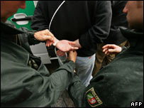 پولیس نے جرمنی اور پولینڈ کی ٹیموں کے درمیان عالمی کپ کا میچ شروع ہونے سے پہلے 300 شائقین کو گرفتار کیا ہے۔ پولیس کا کہنا ہے کہ ڈورٹمنڈ میں تشدد کا آغاز اس وقت ہوا جب پولیس نے متعدد تماشائیوں کو گرفتار کرنے کی کوشش کی جنہوں نے جواباً پولیس پر حملے شروع کر دیئے۔ پولیس نے اس بعد سٹیڈیم کا محاصرہ کر لیا اور جب ہزارہا تماشائی کھیل ختم ہونے کے بعد سٹیڈیم سے چلے گئے تو گرفتاریاں شروع کر دیں۔ جرمن پولیس نے پولینڈ کی پولیس کی نشاندہی پر ساٹھ کے لگ بھگ تماشائیوں کو گرفتار کر لیا جو کے بارے میں پولینڈ کے پولیس نے شر پسند ہونے کی نشاندھی کی تھی۔ پولیس کے ترجمان ششکیا شنیدر نے بی بی سی کو بتایا ہے کہ ابتداً تو پولیس کک اہلکاروں کو ایک مارکیٹ میں صرف اس لیے بھیجا گیا تھا کہ وہ اس مارکیٹ میں ہونے والی ہنگامہ آرائی پر قابو پانے کی کوشش کریں۔ ترجمان کے مطابق ہنگامہ آرائی کا آغاز اس وقت ہوا جب ان لوگوں کو گرفاتر کرنے کی کوشش کی جو شہر کے مرکزیعلاقے میں ہنگامہ آرائی کر رہے تھے۔ | |||||||||||||||||||||||||||||||||||||||||