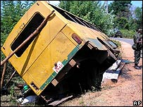 شمال مشرقی سری لنکا میں ایک مسافر بس کے بارودی سرنگ سے ٹکراؤ کے نتیجے میں چونسٹھ افراد ہلاک ہوگئے ہیں۔ بس پر حملے کی خبر ملتے ہی سری لنکا کی فوج نے جوابی کارروائی کرتے ہوئے باغیوں کے علاقوں، سامپور اور کلونچی، پر فضائی حملے کیے ہیں تاہم ابھی تک نہیں معلوم ہو سکا کہ ان حملوں کے نتیجے میں کیا ہوا ہے۔ فوجی حکام کے مطابق بس دھماکے کا واقعہ جمعرات کی صبح کولمبو کے شمال میں انورادھاپورہ کے علاقے میں پیش آیا۔ دریں اثناء انورادھاپورہ کے علاقے میں ہی ایک اور مسافر بس میں دھماکے سے 45 افراد کے زخمی ہونے کی اطلاع ہے۔ حکام کے مطابق بس’ کلے مور‘ سرنگ سے ٹکرانے کے بعد الٹ گئی اور پچیس میٹر تک گھسٹتی چلی گئی۔ فوجی ترجمان بریگیڈیئر پرساد سماراسنگھے نے خبر رساں ادارے رائٹرز کو بتایا کہ بس میں بچے، عورتیں اور پادری سوار تھے۔ مقامی ہسپتال کے ایک ڈاکٹر کا کہنا ہے کہ مرنے والوں میں کم از کم 15 بچے بھی شامل ہیں۔