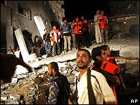 غزہ شہر میں اسرائیلی طیاروں کی بمباری سے فلسطینی وزارتِ خارجہ کی عمارت تباہ ہو گئی ہے۔ اطلاعات کے مطابق حملے کے بعد عمارت میں آگ لگ گئی اور ارد گرد کی عمارتوں کو شدید نقصان پہنچا۔ فلسطینی ذرائع کے مطابق بدھ کے روز اسرائیلی حملوں میں کم از کم تیئس افراد ہلاک ہو گئے ہیں۔ اس سے قبل اسرائیلی فوج نے حماس کے عسکری بازو کے رہنما محمد ضیف کو ہلاک کرنے کے لیئے حملہ کیا جس میں وہ تو صرف زخمی ہوئے لیکن وہاں موجود سات بچے اور ان کے والدین ہلاک ہو گئے۔ اسرائیل کے مطابق محمد ضیف گزشتہ دس سال سے اسرائیل کو مطلوب ترین دس افراد کی فہرست میں پہلے نمبر پر ہے۔ تاہم حماس نے ان کے زخمی ہونے کی تردید کی ہے۔