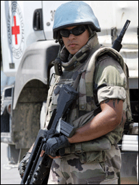 اقوام متحدہ نے جنوبی لبنان میں اپنے عملے کے چار اراکین کی ہلاکت کے بعد اس خدشے کا اظہار کیا ہے کہ ہو سکتا ہے کہ مستقبل میں اس علاقے میں تعینات کی جانے والی امن فوج کے لیے مختلف ممالک اپنے دستے نہ بھیجیں۔ اقوام متحدہ کے نائب مارک ملوک براؤن کا کہنا ہے کہ اسرائیلی فائرنگ سے پہنچنے والے نقصانات پر اس کی معافی قبول کر لی گئی ہے تاہم انہیں اب بھی اس بات کی شدید تشویش ہے کہ کیا ہوا۔ اس سے قبل اقوام متحدہ نے اسرائیل اور حزب اللہ سے تین دن کی عارضی جنگ بندی کی اپیل کی تھی تاکہ جنوبی لبنان میں امدادی اشیاء کی فراہمی اور زخمیوں کے علاقے سے انخلاء کو ممکن بنایا جا سکے۔ اسرائیل نے عارضی جنگ بندی کی اس پیشکش کو رد کر دیا ہے۔ اقوام متحدہ کے امدادی سرگرمیوں کے سربراہ ژاں ایگلینڈ کا کہنا ہے کہ دو ہفتوں سے جاری اس لڑائی میں بچے، بوڑھے اور معذور افراد متاثرہ علاقوں میں محصور ہوکر رہ گئے ہیں۔ امریکی صدر جارج بش نے ایک بار پھر فریقین کے مابین فوری جنگ بندی کی ایپل کو مسترد کر دیا ہے۔ ان کا کہنا ہے کہ لبنان میں بین الاقوامی فوج تعینات کی جائے گی۔ امریکی وزیر خارجہ کونڈو لیزا رائس سنیچر کو ایک بار پھر مشرق وسطیٰ کے دورے پر روانہ ہو گئی ہیں۔ صدر بش کا کہنا ہے کہ علاقے میں امن کے قیام اور دونوں ممالک میں استحکام کے لیے کونڈو لیزا رائس لبنان اور اسرائیل کے رہنماؤں سے بات چیت کریں گی۔ توقع کی جا رہی ہے کہ مس رائس اقوام متحدہ کی قرار داد پر عمل در آمد کے لیے زور دیں گی جس کے تحت بین الاقوامی فوج جنوبی لبنان کے علاقے میں تعینات کی جائے گی۔ واشنگٹن میں امریکی صدر اور برطانوی وزیراعظم نے ایک پریس کانفرنس میں واضح الفاظ میں کہا کہ حزب اللہ کی موجودگی میں لبنان میں پائیدار امن قائم نہیں ہو سکتا اور حزب اللہ کو اقوام متحدہ کی قراردادوں کے مطابق غیر مسلح کیا جانا بہت ضروری ہے۔ دونوں رہنماؤں نے ایران اور شام پر الزام لگایا کہ وہ حزب اللہ کو ہتھیار مہیا کر رہے ہیں اور وہ ایسا کرنا بند کر دیں۔