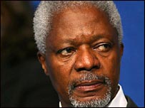 لبنان کی صورتحال پر بات چیت کے لیئے اقوامِ متحدہ کی سلامتی کونسل کے ہنگامی اجلاس سے خطاب کرتے ہوئے لبنان کے خصوصی نمائندے نوہاد محمود نے سلامتی کونسل کے کارروائی نہ کرنے پر تنقید کی ہے اور کہا ہے کہ’اسرائیل انسانیت سوز مظالم ڈھا رہا ہے اور جنگی جرائم کر رہا ہے‘۔ اجلاس میں فرانس نے فوری جنگ بندی کی قرارداد کا مسودہ بھی پیش کیا ہے۔ سلامتی کونسل کا یہ اجلاس قانا پر اسرائیلی حملے میں چونتیس بچوں سمیت چوّن افراد کی ہلاکت کے بعد اقوامِ متحدہ کے سیکرٹری جنرل کوفی عنان اور لبنانی وزیراعظم فواد سینیورا کی درخواست پر بلایا گیا ہے۔ اجلاس سے خطاب کے دوران اقوامِ متحدہ کے سیکرٹری جنرل کوفی عنان کا کہنا تھا کہ’ہمیں اس حملے کی سخت ترین انداز سے مذمت کرنی چاہیئے اور میں آپ سب سے بھی ایسا ہی کرنے کی اپیل کرتا ہوں۔ مجھے افسوس ہے کہ جنگ بندی کے معاملے میں میری سابقہ اپیلوں پر کان نہیں دھرا گیا اور جس کا نتیجہ معصوم انسانی جانوں کے ضیاع کی صورت میں نکلا‘ جبکہ اقوامِ متحدہ میں اسرائیلی سفیر کا کہنا تھا کہ’اگرچہ قانا میں مرنے والے اسرائیلی گولہ باری کا نشانہ بنے لیکن انہیں درحقیقت حزب اللہ نے نشانہ بنایا ہے‘۔ انہوں نے کہا کہ قانا بہت عرصے سے حزب اللہ کا گڑھ رہا ہے۔  | | | جنگ بندی کے لیئے میری اپیلوں پر کان نہیں دھرا گیا: کوفی عنان |