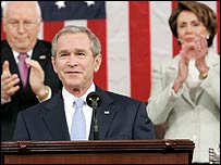 ’انتہا پسند سنی اسلامی ریڈیکل تحریک میں ایک کیمپ کا درجہ رکھتے ہیں۔ امریکہ کو شیعہ انتہا پسندوں کی طرف سے بھی خطرہ ہے جو مشرقِ وسطیٰ پر غلبہ حاصل کرنا چاہتے ہیں۔ ان میں سے بہت سے ایران سے ہدایات لیتے ہیں جن میں حزب اللہ بھی شامل ہے۔ شیعہ اور سنی انتہا پسند مطلق العنانیت کی دھمکی کے مختلف روپ ہیں۔‘ سٹیٹ آف یونین خطاب میں جو صدر بش کا ساتواں خطاب ہے، صدر بش نے کہا کہ امریکہ کو کسی قیمت پر بھی عراق میں ناکام نہیں ہونا چاہیے۔ صدر بش نے عراق میں بڑھتی ہوئی فرقہ واریت کے بارے میں کہا کہ اگر بغداد کے محفوظ ہونے سے قبل امریکی فوجیں باہر نکل آئیں تو عراقی حکومت کوانتہا پسند تاراج کر دیں گے۔ انہوں نے کہا کہ عراق میں بیس ہزار کے قریب مزید امریکی فوج بھیجنے کی ان کی پالیسی کو موقع دیا جائے۔ صدر بش نے امریکہ کے داخلی مسائل پر بھی بات کرتے ہوئے اپنے سیاسی حریفوں سے کہا کہ ملک کے انتہائی اہم مسائل کے حل کے لیے وہ ان کا ساتھ دیں۔ صدر بش کے ایجنڈے کا ایک اہم ترین نکتہ توانائی کی پالیسی تھا جس میں امریکی صدر نے کہا کہ نئی ٹیکنالوجی کے استعمال سے دو ہزار سترہ تک پیٹرول کے استعمال پر بیس فیصد کمی ہو سکتی ہے۔